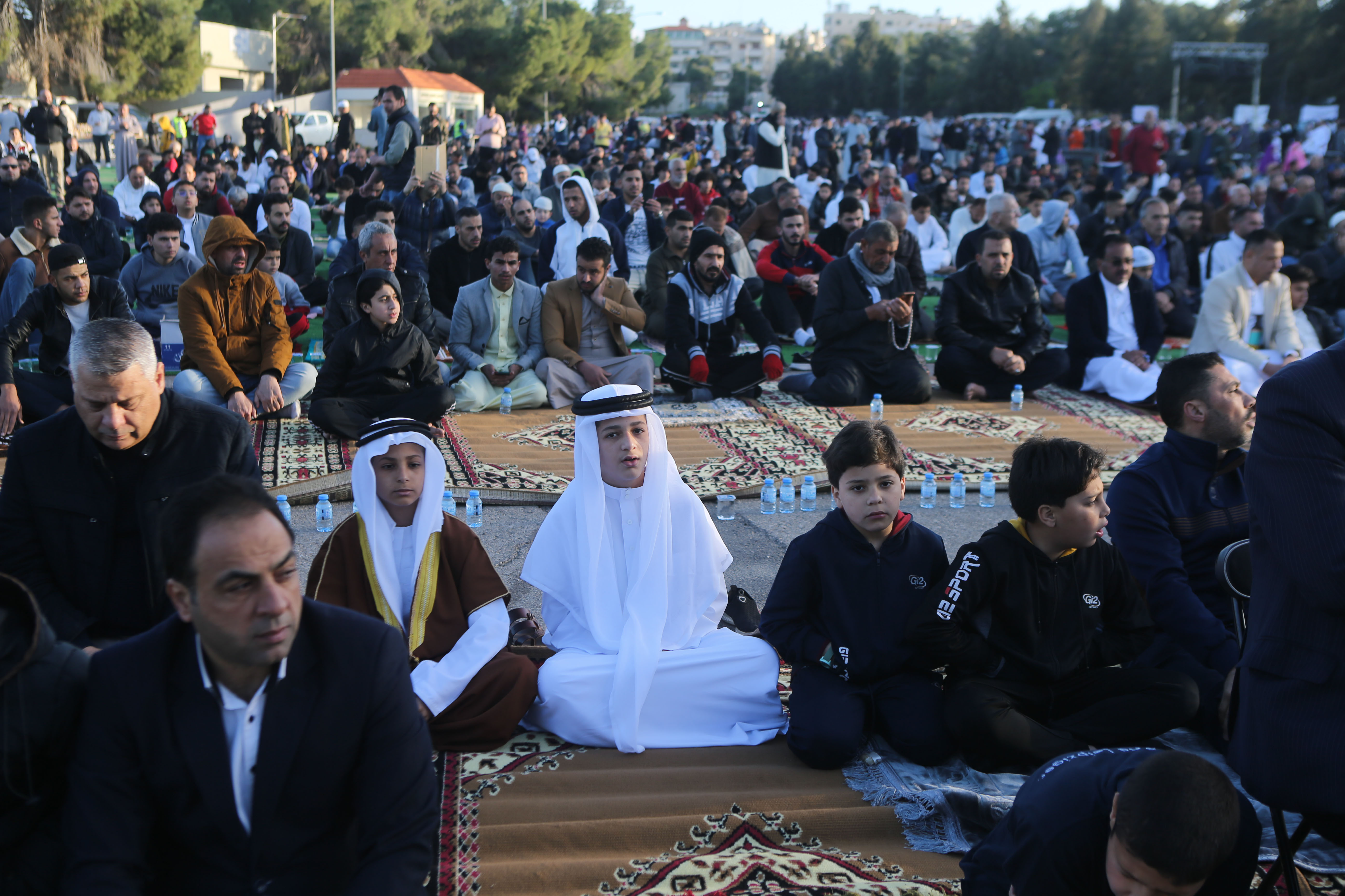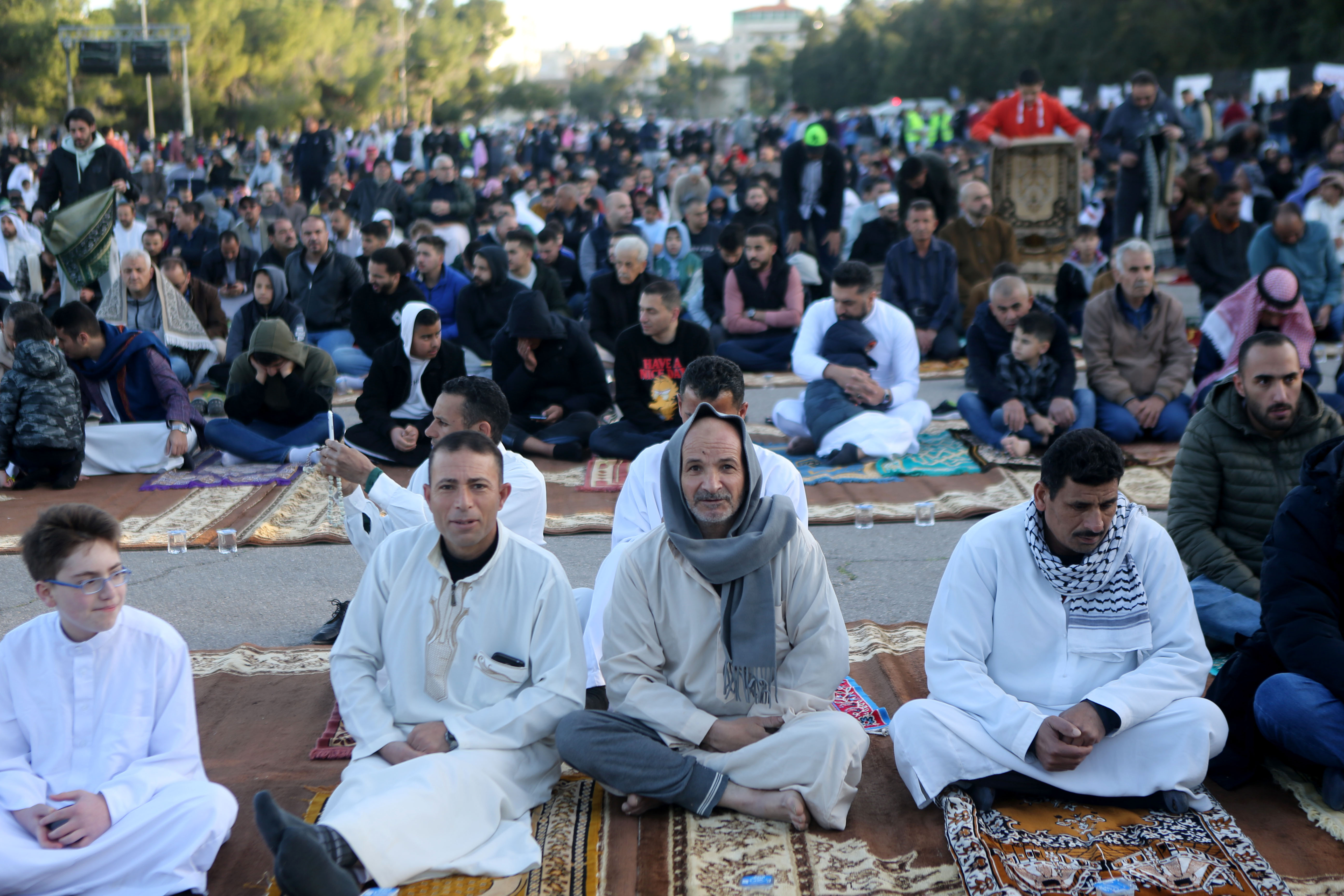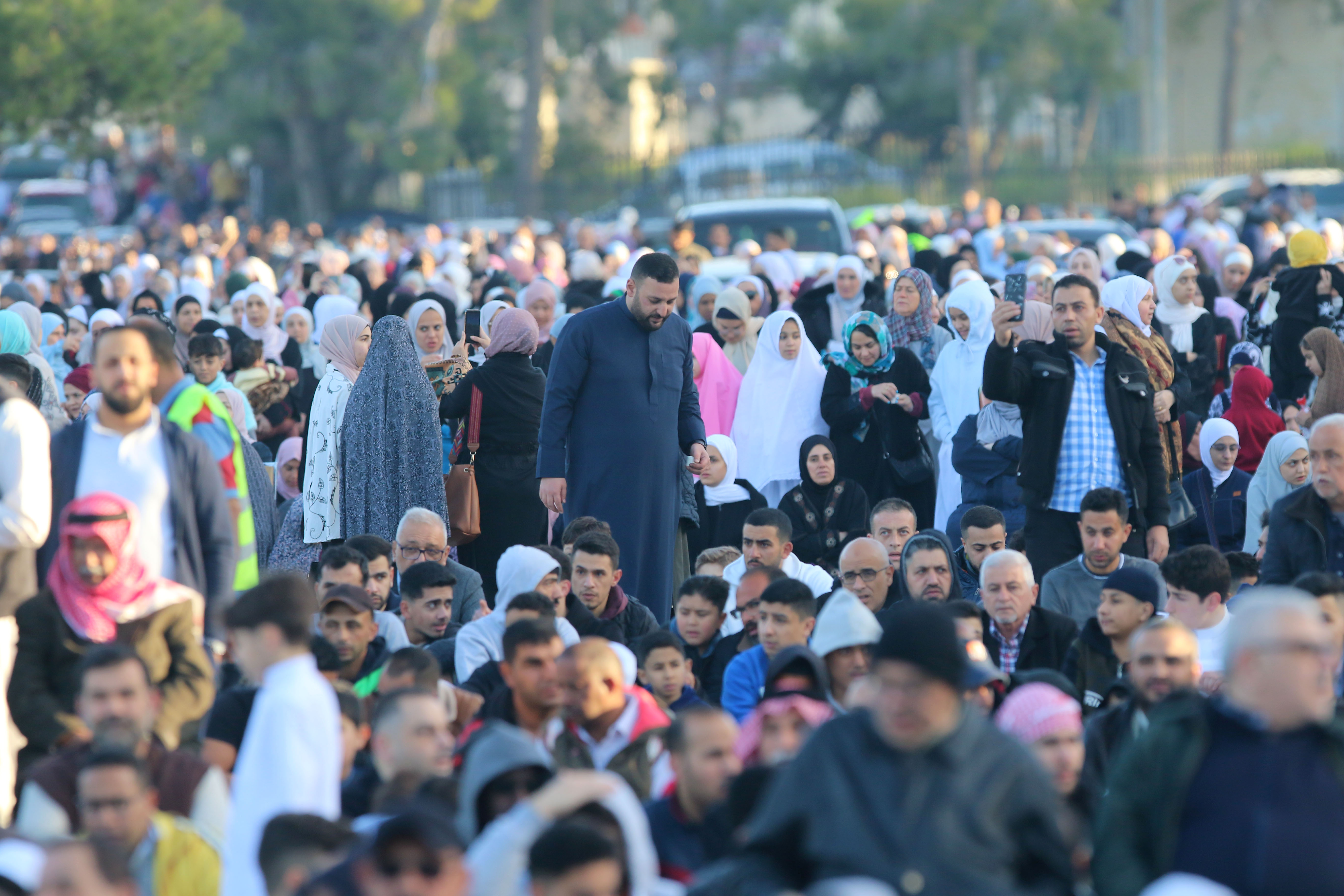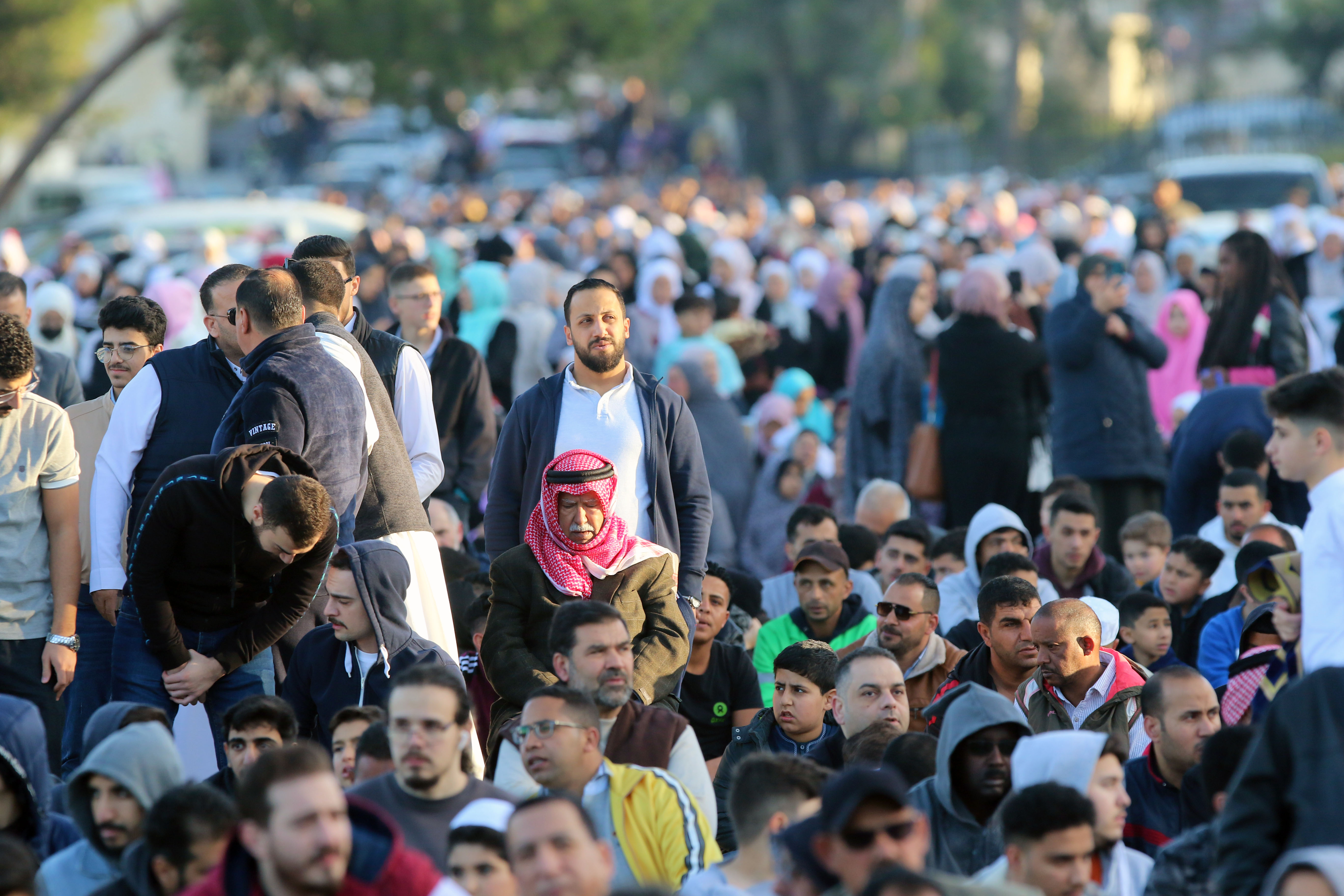 أدى الأردنيون، صلاة عيد الفطر في مختلف المساجد والمصليات التي حددتها وزارة الأوقاف في جميع المحافظات، حيث رصدت "المملكة" أجواء الصلاء في المصلى الرئيسي في المدينة الرياضية في عمّان. (صلاح ملكاوي/ المملكة)