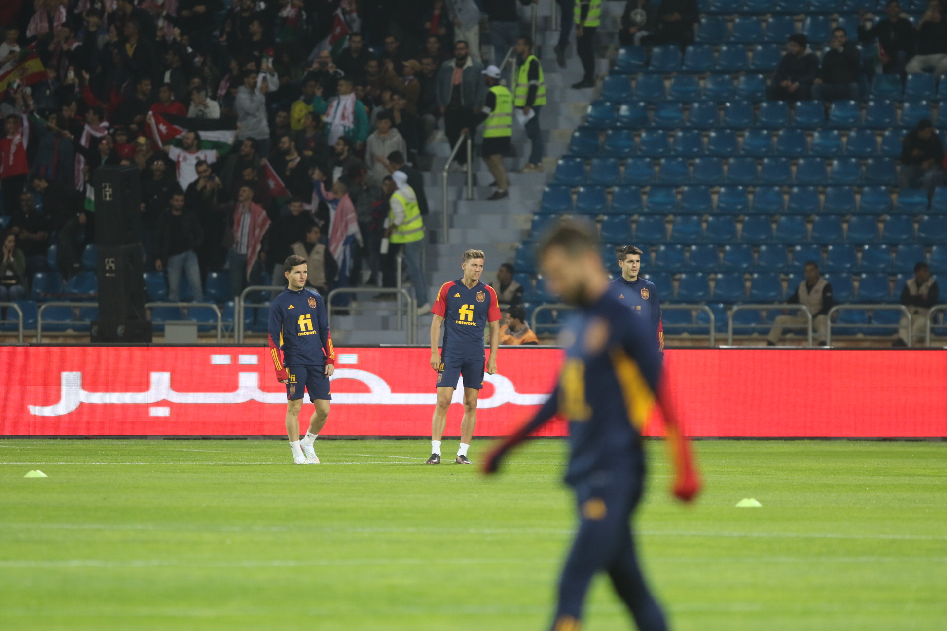 انتهت مباراة ودية جمعت المنتخب الوطني مع نظيره الإسباني على ستاد عمّان الدولي بخسارة النشامى 3-1، حيث سجل لاعب المنتخب أحمد سمير الهدف الوحيد للنشامى بمرمى الإسبان. (صلاح ملكاوي/المملكة)