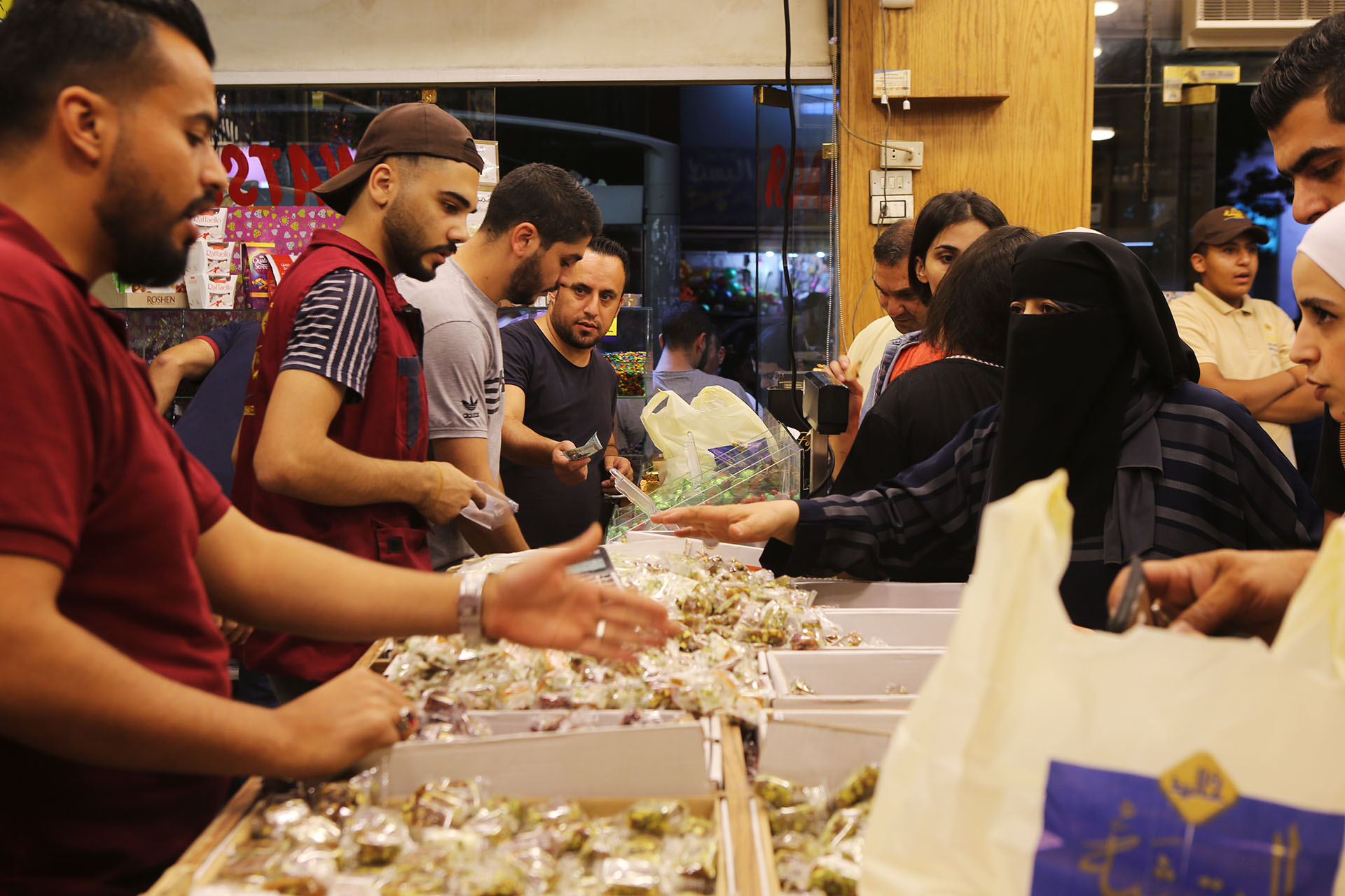 شهدت أسواق عمّان، حركة شرائية اعتيادية مع حلول عيد الأضحى، من شراء ملابس العيد واحتياجات الضيافة، تزامنا مع تمديد ساعات عمل جميع الانشطة الاقتصادية لغاية الساعة الواحدة صباحا، وتطبيق حظر التجول بعد الساعة الثانية صباحا. (صلاح ملكاوي/ المملكة)