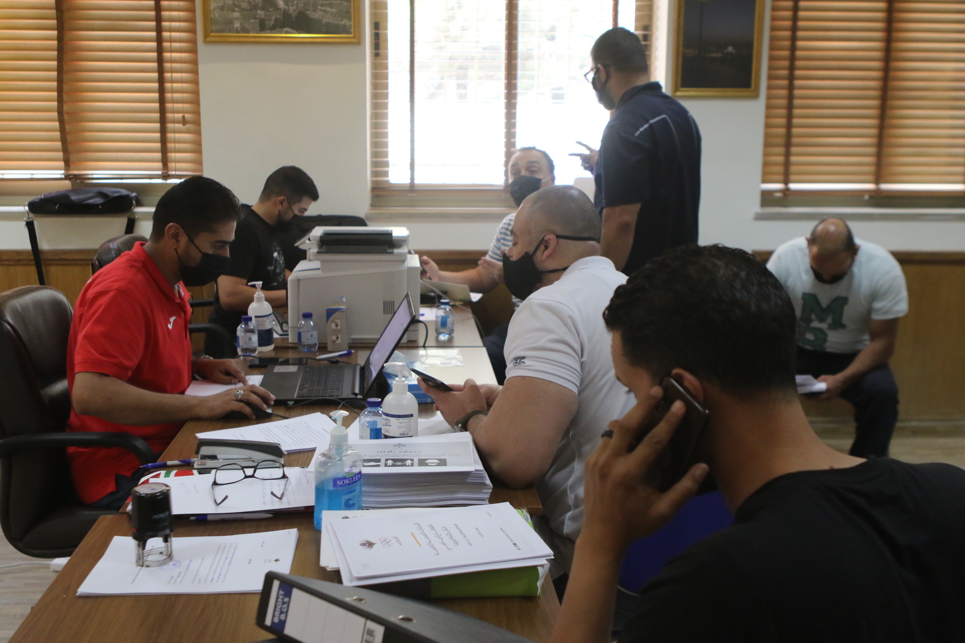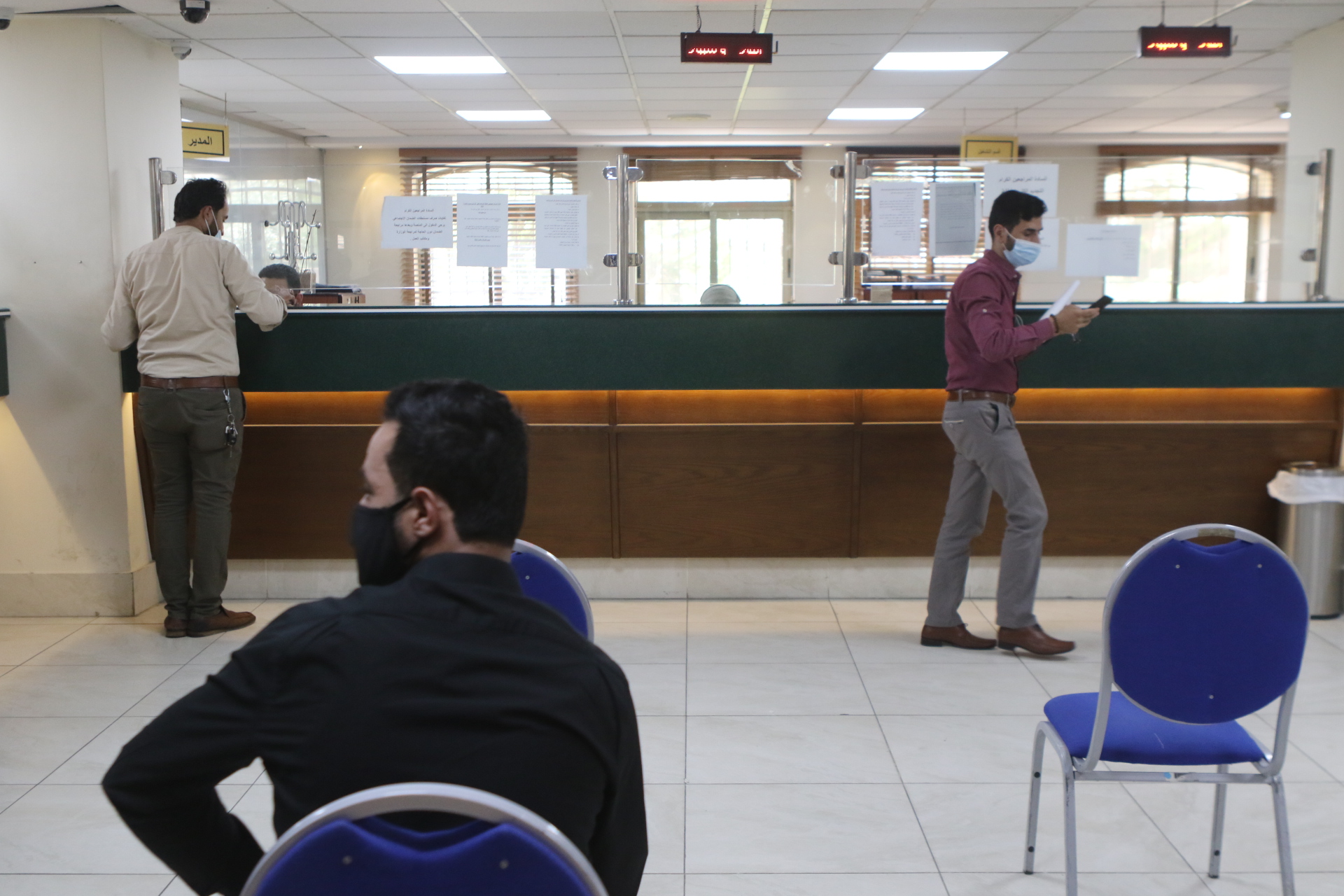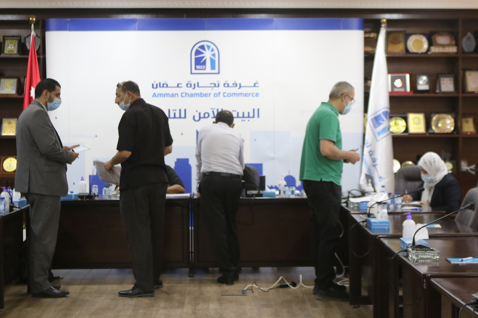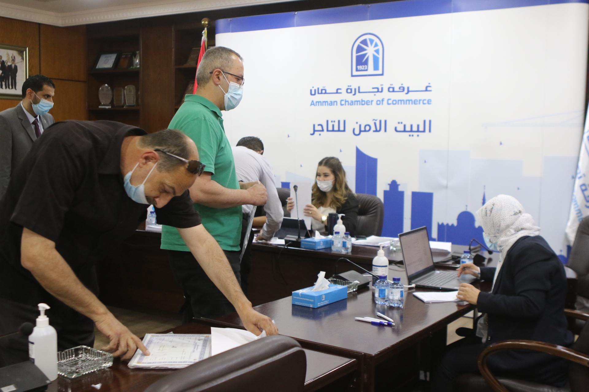 بدأت غرفة تجارة عمّان، استقبال منتسبيها في العاصمة عمّان من أصحاب الشركات والمؤسسات التجارية وموظفيهم والعاملين لديهم، الراغبين بالعودة للعمل لتقديم طلب للجهة المسؤولة والتوقيع على تعهد خاص بالالتزام بالبروتوكولات الصحية. (صلاح ملكاوي/المملكة)